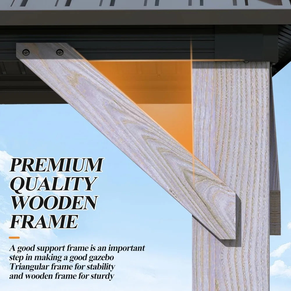10X10 Outdoor Wood Gazebo With Hardtop And Curtains