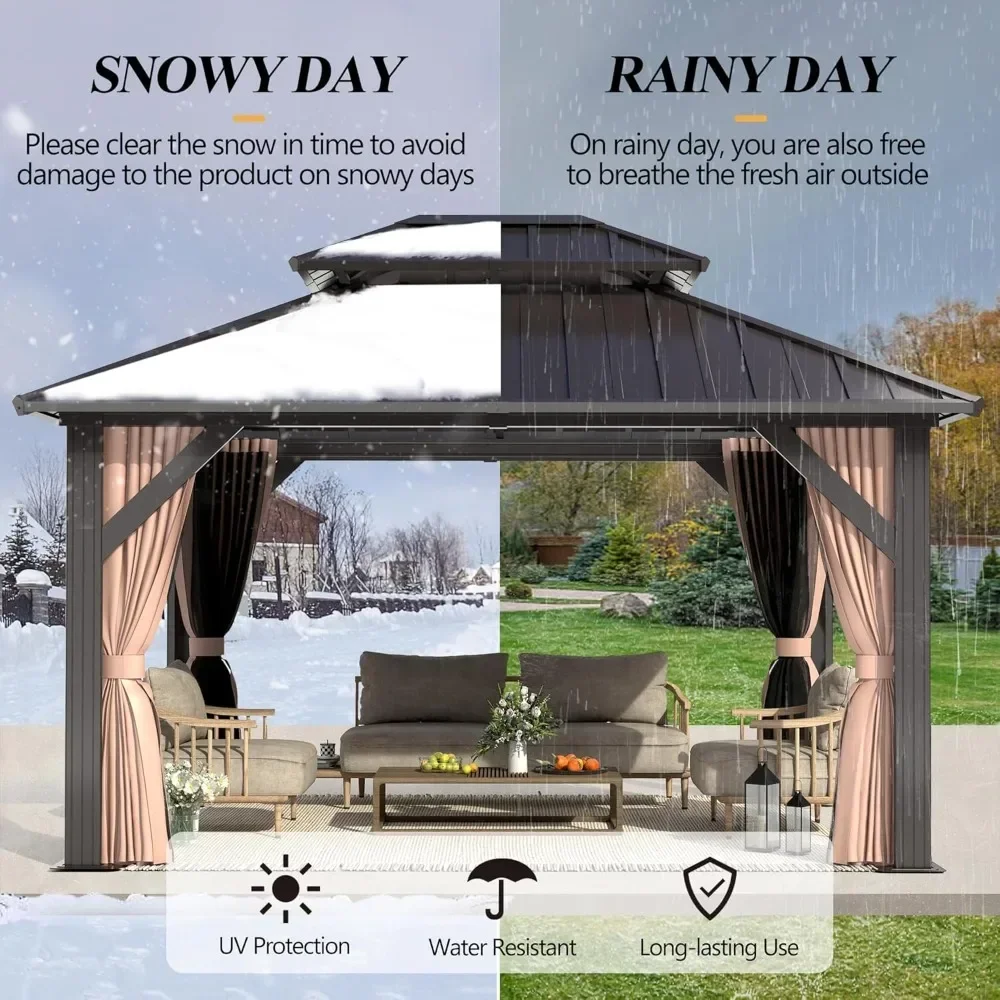 10'x12' Outdoor Hardtop Gazebo with Double Roof - Heavy-Duty Galvanized Steel Top Aluminum Frame Gazebo with Breathable Netting