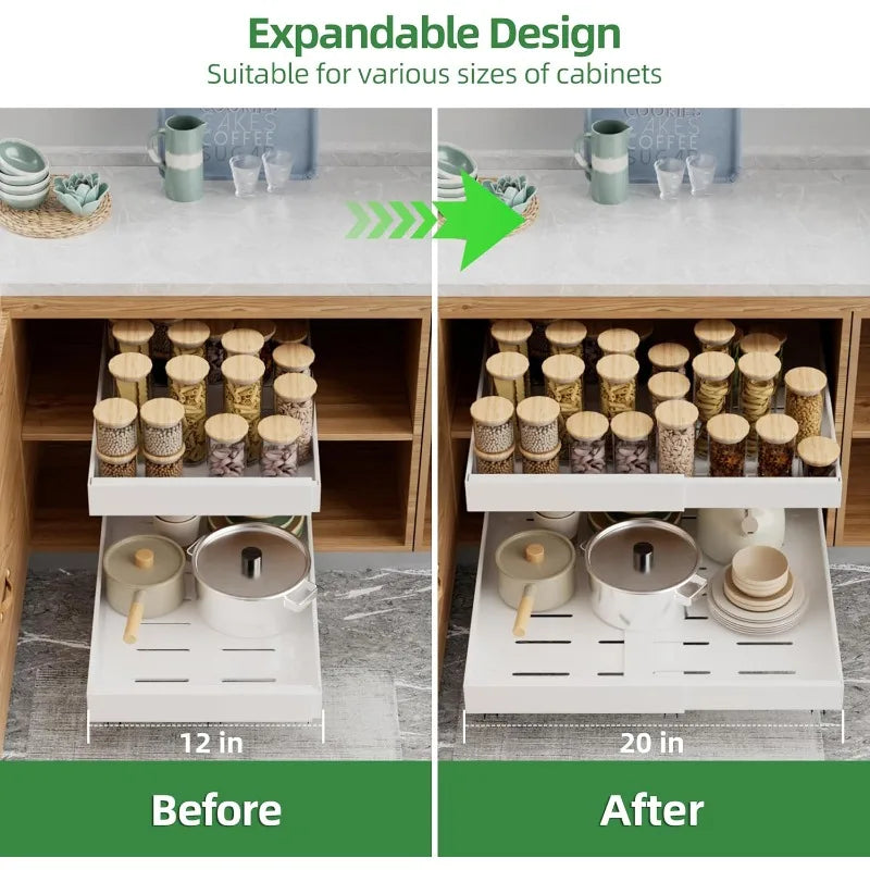2 Pack Pull Out Cabinet Organizer Expandable No Drill Drawers