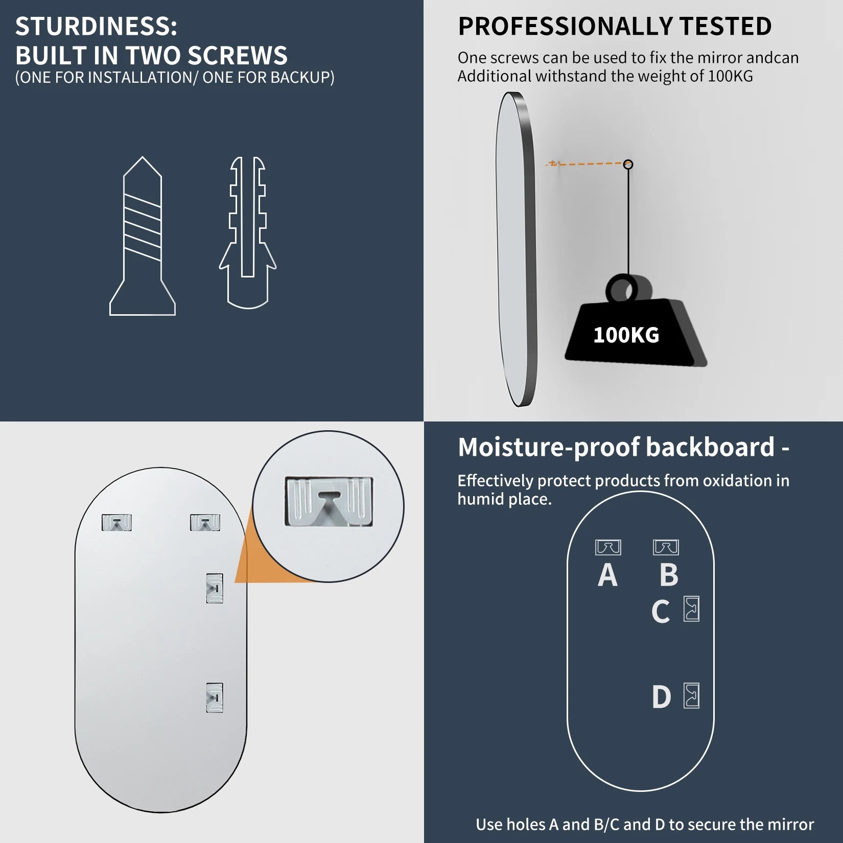 50x100CM Oval Black Metal Framed Wall Mirror Makeup for Living Room Entryway Bathroom Vanity Mirror Decor