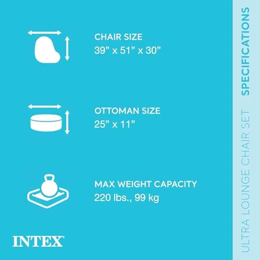 68575EP Inflatable Corner Sofa with 2 68564EP Ultra Lounge Chairs & Ottomans, Indoor Use, Cupholders, 2-in-1 Valve, 880lb/220lb