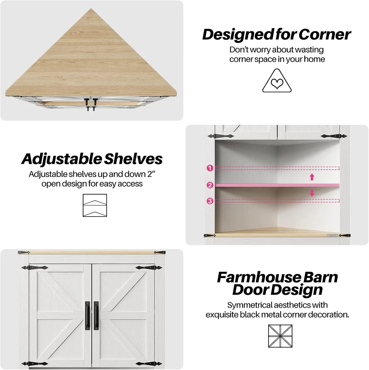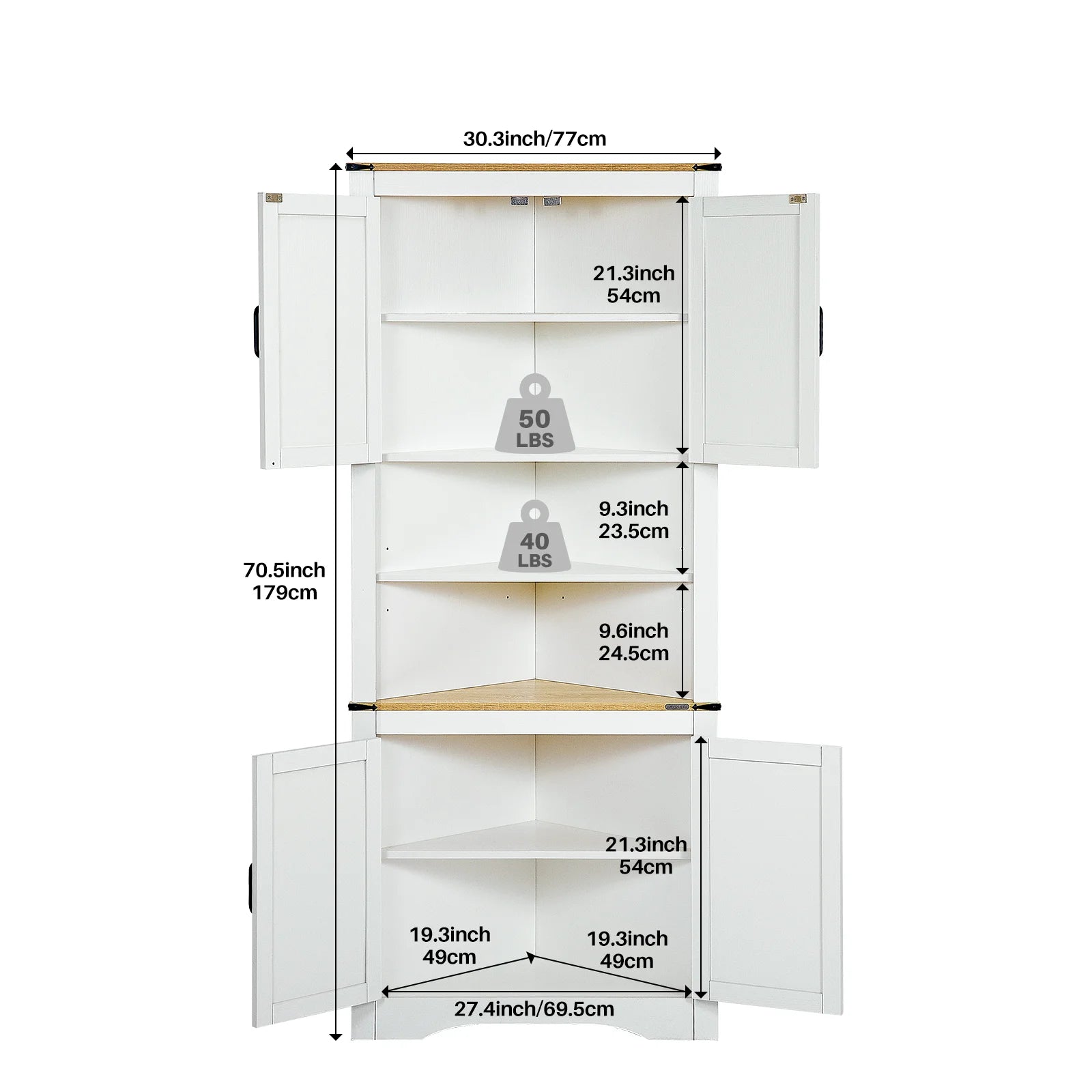 Farmhouse Corner Cabinet - Dimensions: 27.4''(W) x 14.1''(D) x 70.5''(H) .Higher than others.