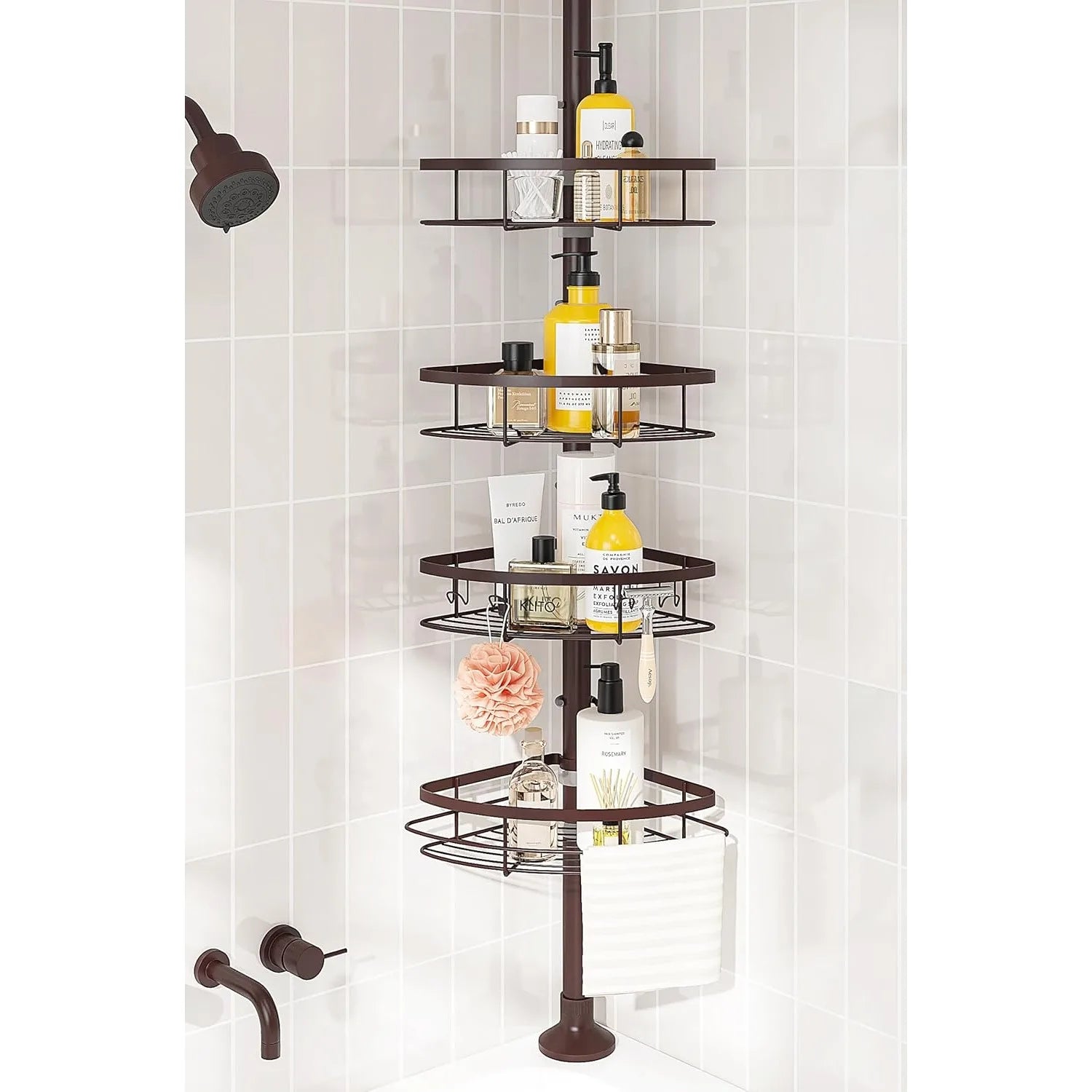 Rustproof Shower Corner Caddy Organizer for Bathroom,Tension Pole with 4 Baskets, for Bathtub Storage Rack,39.2 to 113 Inch