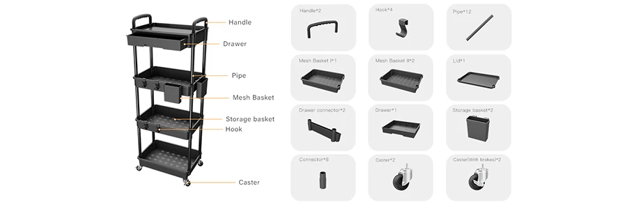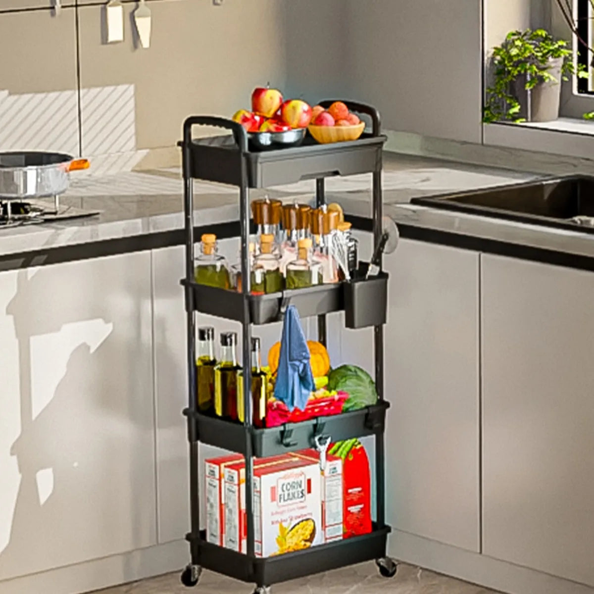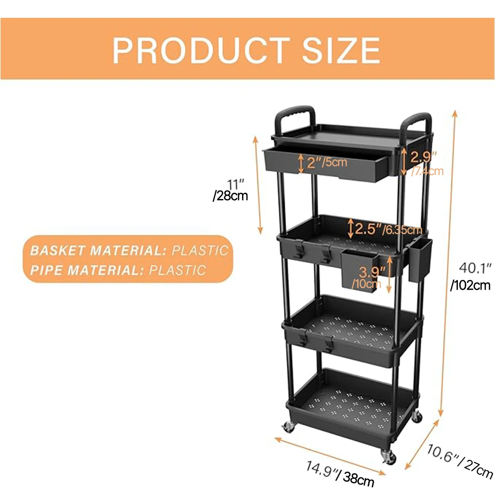 Tier Rolling Utility Cart with Drawer, Utility Cart Made of Multifunctional Storage Organizer Tool for Kitchen, Bathroom